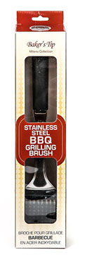 Baker’s Tips Heavy-duty Stainless Steel Grilling Brush is great for cleaning BBQ grills and grids. Includes a non-slip and soft-grip handle. In addition to the flawless construction, it also includes a hook for easy hanging. The grilling brush is part of the Baker’s Tip Stainless Steel Barbeque Collection.