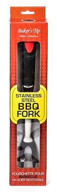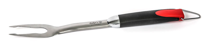 Baker’s Tips Heavy-duty Stainless Steel BBQ Fork is great for holding meats while cutting. Includes a non-slip and soft-grip handle. In addition to the flawless construction, it also includes a hook for easy hanging. The BBQ fork is part of the Baker’s Tip Stainless Steel Barbeque Collection.