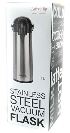 Baker’s Tip Stainless Steel 2 Litre Vacuum Flasks include double wall insulation for maximum temperature retention. The double wall insulation provides maximum preservation of freshness and flavour. Baker’s Tip Flasks have a stainless steel interior and exterior. Baker’s Tip Premium Flasks Collection keeps beverages hot or cold for up to 24 hours. It has an easy one-handed serving capability with level operated stopper. Baker’s Tip Stainless Steel 2 L Flask is made for easy enjoyment of your beverage anywhere with friends and family.