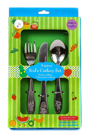 3 Piece Stainless Steel Oval Kid's Cutlery Set (Blue)
