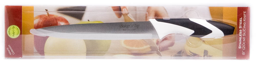 Baker’s Tip Slicing Knife will maximize your culinary results. It is a versatile, multi-purpose knife designed for a range of food preparation; ideal for thinly slicing meat, as well as pastries and cakes. Its superior high-carbon stainless steel blade with proper thickness will result to exceptional kitchen performance. Also has a textured grip handle for better grasp and better results.