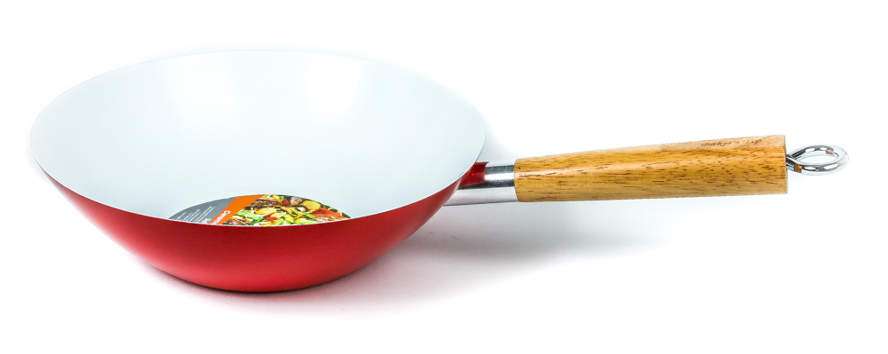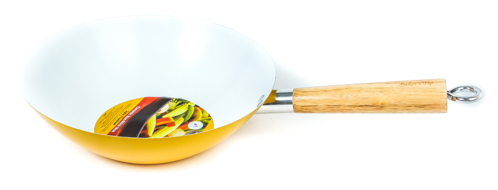Add color and style to your kitchen with Baker’s Tip Ceramic Non-Stick Woks. Baker’s Tip Woks make cooking easier and adds style with its bold and vibrant colors. Its durable surface requires less oil and makes it a quick and easy cleanup. This stylish and functional wok comes in four vibrant colors and has a wooden handle.