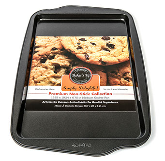 Baker’s Tip Medium Cookie Pan has a non-stick performance, is serving suitable and has a sophisticated design--you get it all with Simply Delightful Premium Bakeware. Its secure coating on durable steel makes food release easy and is effortless to cleanup. The extended handles are convenient for safe and easy lifting of each pan. Baking with Baker’s Tip Premium Non-stick Collection will satisfy your baking needs.