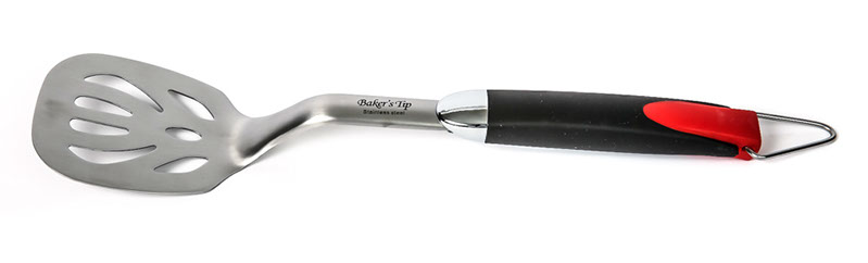 Baker’s Tips Heavy-duty Stainless Steel Spatula is great for holding meat as well as flipping them. Includes a non-slip and soft-grip handle. In addition to the flawless construction, it also includes a hook for easy hanging. The BBQ Spatula is part of the Baker’s Tip Stainless Steel Barbeque Collection.