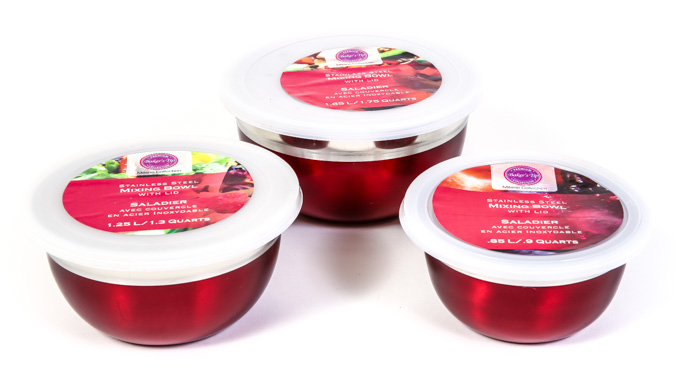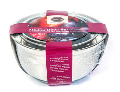 Baker’s Tip Anti-Skid Mixing Bowl comes in a 3 piece set (1.4/2.4/4.65 L). Our Mixing Bowl Set is a must have for any serious chef. Antiskid base prevents these durable, stainless steel bowls from slipping no matter what you are mixing. These stainless-steel mixing bowls feature inner measures to conveniently add ingredients and easily prepare recipes right in the bowl. The wide easy-grip rims and flat-bottom bases make these the ideal bowls to mix ingredients, make sauces and blend batters.