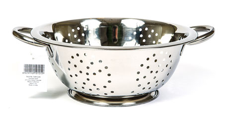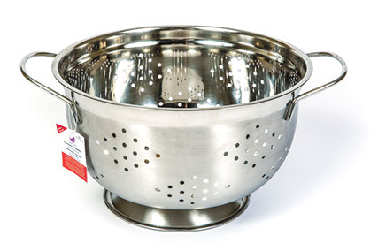 Baker’s Tip Colanders are used for straining food such as pasta or fruits and vegetables. Sturdy stainless steel colanders feature side handles so you can avoid steam burns when straining hot food.