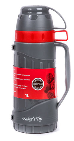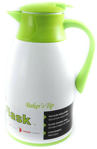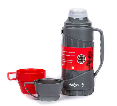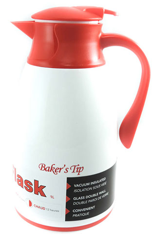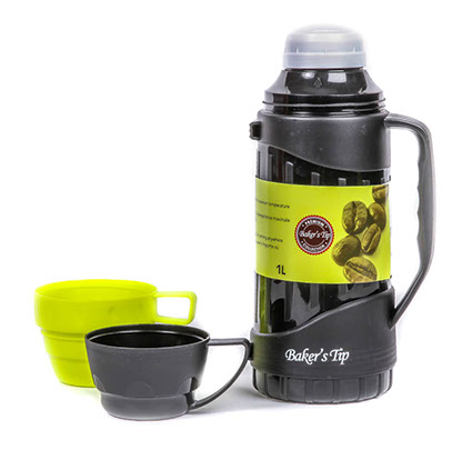 Baker’s Tip Coffee Pots are glass vacuum insulated for maximum temperature retention, hot or cold. This durable flask is portable and lightweight; it includes two built-in drinking cups for serving anywhere.