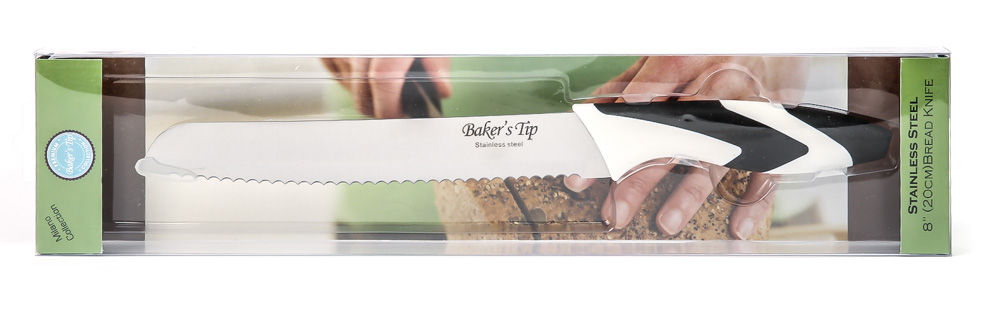 Baker’s Tip Bread Knife will maximize your culinary results. The Bread Knife has scalloped teeth which allow the blade to cut through the thick crust and soft interior of a loaf of fresh bread perfectly. Its superior high-carbon stainless steel blade with proper thickness will result to exceptional kitchen performance. Also has a textured grip handle for better grasp and better results.